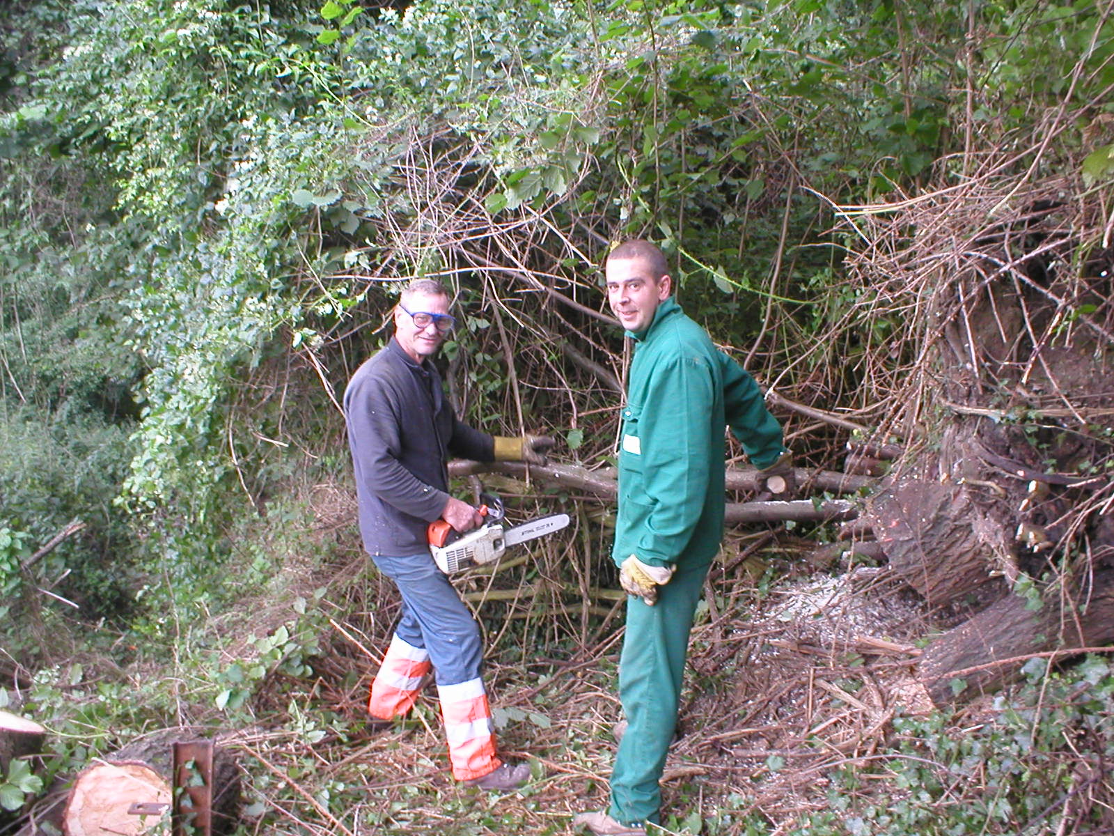 nous sommes affairés avec deux ouvriers communaux, Etienne et Jean-Luc,